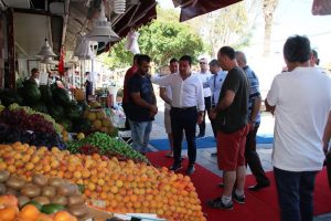 Daha sonra Çarşı esnafını ziyaret eden Bodrum Belediye Başkanı Aras, turistlerin yoğun olarak gezdiği ve alışveriş yaptığı çarşı mahallesinde görüntü kirliliği yaratan, işgaliye fazlalığında bulunan ve çevreyi kirleten hususlarla ilgili esnafları uyardı. Esnafın sorunlarını da dinleyen Aras, “Sezona girdiğimiz ve bayram nedeniyle misafirlerimizi ağırlamaya başladığımız bu günlerde daha temiz, daha güzel bir Bodrum için hepimiz üzerimize düşeni yapmak durumundayız. Bodrum’a tatil için gelen insanların, buradan mutlu bir şekilde ayrılmasını istiyoruz. Bu sadece bizim için değil, siz esnaf arkadaşlarımız için de önemli” diye konuştu. Başkan Aras, özellikle hanutçuluk konusunda tüm esnafların duyarlı olmalarını istedi.