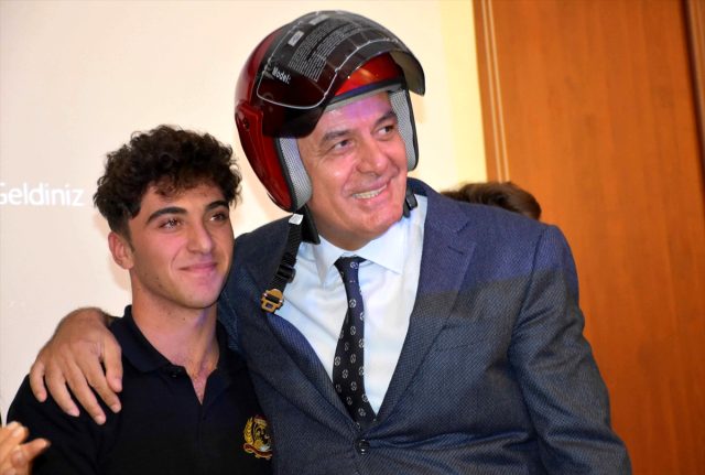 Öğrencilere kasklarını, Kaymakam Aksoy ile Marmaris Emniyet Müdürü Namık Söylemez, Marmaris İlçe Jandarma Komutanı Yarbay Mustafa Çetinkaya, Marmaris İlçe Milli Eğitim Müdürü Züleyha Aldoğan dağıttı.