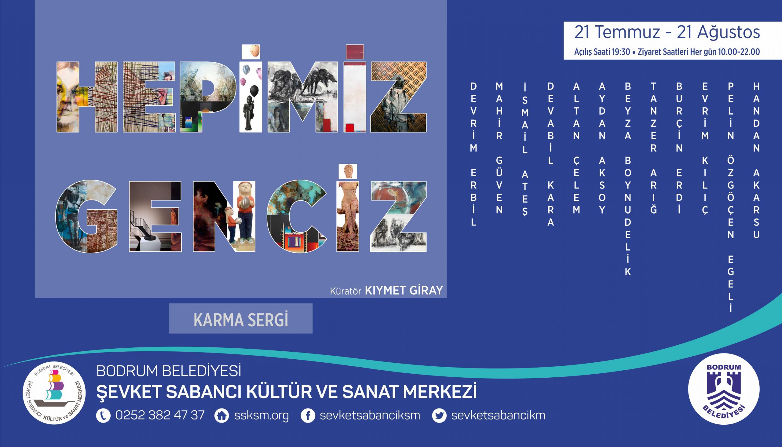 Bodrum Belediyesi Şevket Sabancı Kültür ve Sanat Merkezi, 21 Temmuz Salı günü 12 usta ressamın eserlerinden oluşan “Hepimiz Genciz” adlı karma sergiyle kapılarını sanat tutkunlarına açıyor. Küresel salgınla mücadele döneminde ‘yaş sınırına’ takılan ve yaşamlarının bir bölümünü evlerine kapanarak geçiren 60 yaş ve üzeri resim, heykel ve enstalasyon sanatçıları, uzun bir aradan sonra eserleriyle ilk kez sanatseverlerin karşısına çıkacak. Küratörlüğünü Prof. Dr. Kıymet Giray’ın üstlendiği sergideDevrim Erbil, Mahir Güven, İsmail Ateş, Devabil Kara, Altan Çelem, Aydan Aksoy, Beyza Boynudelik, Tanzer Arığ, Burçin Erdi, Evrim Kılıç, Pelin Özgöçen Egeli ve Handan Akarsu eserleri ile yer alacak.