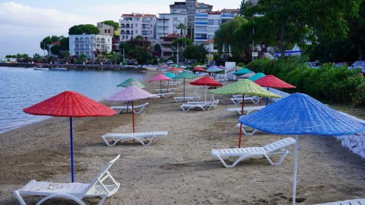 Milas Belediyesi halk plajlarındaki şezlongları kaldırıyor.