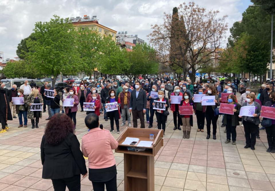 Basın açıklamasında şu ifadelere yer verildi; “Recep Tayyip Erdoğan tarafını bir kez daha belli ederek; kadınların yaşam hakkına sahip çıkan İstanbul Sözleşmesi’ne destek çıkacağına, zalimlerin yanında saf tutmuştur. Türkiye’nin ilk imzacısı olduğu İstanbul Sözleşmesi, kadına yönelik her türlü şiddetin önlenmesi için devlete sorumluluk yüklemektedir. Psikolojik şiddet, ısrarlı takip, fiziksel şiddet, zorla evlendirme, cinsel ve ekonomik şiddet de dahil olmak üzere kadınları her türlü şiddetten koruyan en kapsamlı sözleşmedir. Şimdi AKP hükümetine soruyoruz: “Bu sözleşmenin neyinden rahatsız oldunuz?” Kadını yok sayan düzenden doğan kadına yönelik şiddetin ateşini harlamak, şahsım hükümetinin haddi değildir. Kadına karşı vahşet ve aile içi şiddet vakalarında yaşanacak artışın vebali, İstanbul Sözleşmesi’ni feshedenlerin boynundadır. 20 Temmuz sivil darbesinin failleri durmuyor, haksız, hukuksuz ve adaletsiz uygulamalarına devam ediyor. Dün gece TBMM’ye bir darbe daha yapıldı ve kadınların uzun mücadeleler sonucunda elde ettiği kazanımlar heba edildi, evrensel değerlerden uzaklaşıldı. Meclis’te oy birliğiyle kabul edilmiş olan İstanbul Sözleşmesi, milletin iradesi yok sayılarak feshedilemez. İnsan hakları, temel hak ve özgürlükler alanındaki sözleşmeler TBMM kararıyla; yani kanunla alınır. Bu karar açıkça Anayasamızı da yok saymaktır. Kadın cinayetleri politiktir. Biz, Erdoğan’ın TBMM’yi ve hukuku yok sayarak aldığı İstanbul Sözleşmesi’nden çekilme kararını tanımıyoruz, tanımayacağız! Biz kadınlar korkmuyoruz, sinmiyoruz, zalimlere itaat etmiyoruz, geri durmuyoruz. Onlar korku yaymaya çalıştıkça, bizim örgütlü gücümüz her geçen gün büyüyor. Onlar dallarımızı budamaya çalıştıkça, bizim köklerimiz güçleniyor. Başta TBMM olmak üzere her platformda bu sözleşmenin gereklerinin yapılmasını sağlamak için kadın hareketiyle birlikte mücadelemize devam edeceğiz. Bundan sonra bulunduğumuz her alan; sokaklar, mahalleler, meydanlar dahil bizim için mücadele alanıdır. Vicdan sahibi her erkeğin annesi, eşi, kardeşi, arkadaşı olan ve yaşamın eşit ortağı olan kadınlarla beraber olacağını biliyoruz. Biz, hep birlikte bu zulme dur diyeceğiz. Türkiye’ye aydınlık günleri bizler getireceğiz”