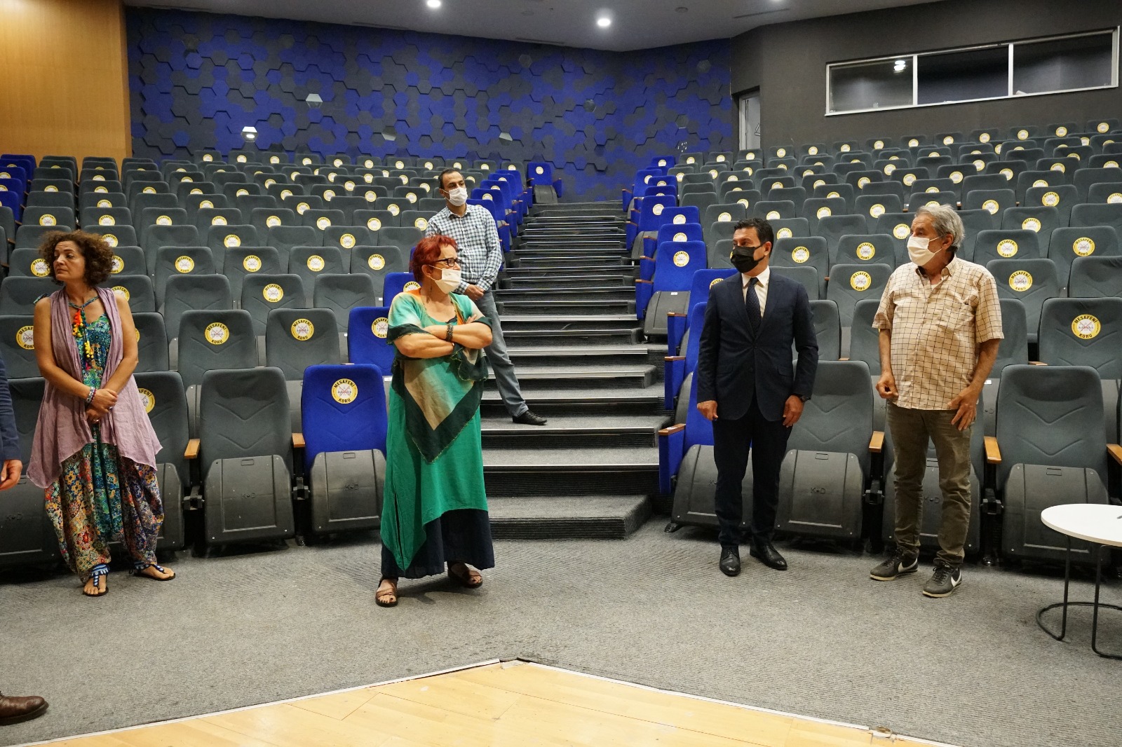 Başkan Aras, tiyatro sanatçıları ile birlikte Nurol Kültür Merkezi’nde incelemelerde bulunarak eksikleri yerinde tespit etti.