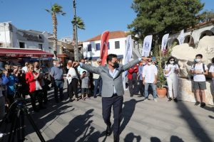 Sünger heykelinin açılış törenine Nâzım Hikmet ve Cevat Şakir’in dizeleriyle başlayan Başkan Aras konuşmasında, “Yüzlerce yıldır bu denizlerden gelmiş geçmiş, mezarları olmayan birçok denizci var. Onların anısını yaşatmak için Aksona Mehmet bütün ömrünü vakfetti. Son süngerci diyorlar ona, ben onu kabul etmiyorum. Daha onun yolundan çok süngerci, çok denizci, çok balıkçı geçecek bu topraklardan. Bodrum’un sahibi sadece Bodrum Belediyesi ve Başkanı değildir. Buraya gelip yaşayan herkesindir Bodrum. Bodrum’a sahip çıkacaksınız. Ben tek başıma başaramam, arkadaşlarım başaramaz, Aksona başaramaz, tirhandile sahip çıkın, dağa, taşa, tarihe sahip çıkın, kültürümüze sanatımıza, sanatçımıza, türkülerimize sahip çıkın. Bu topraklara, bu denize sahip çıkın. Bizim başka şansımız yok” ifadelerini kullandı.