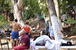 Hava sıcaklığının 38, deniz suyu sıcaklığının 27 derece ölçüldüğü ‘Sakin Şehir’ unvanlı mahallenin 4 bin olan nüfusu, 20 kat artarak 80 bine ulaştı. Tatilciler, mavi bayraklı halk plajında gün boyu denize girip, güneşlendi.