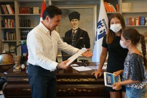 Çocukların duyarlı davranışlarını takdirle karşılayan Başkan Aras, Mira, Elif Zeynep ve ailelerine teşekkür ederek, ‘’Sevgili Elif ve Mira yangınlardan dolayı, en azından bizim de yapacak bir şeyimiz var diyerek sokağa çıkmışlar ve kendi hazırladıkları ürünleri satarak bu parayı toplamışlar. Bu parayı yangında kaybettiğimiz ağaçların tekrar yerine gelmesi için belediyemize teslim ettiler. Bizim de istediğimiz özellikle çocukların ve gençlerin bu çalışmaların içinde olması. Şimdiden bu çabaların içinde olmaları ve sosyal sorumluluk hissiyle hareket etmeleri çok önemli. Onlarla birlikte tekrar doğayı ve umutlarımızı yeşerteceğiz’’ diye konuştu.