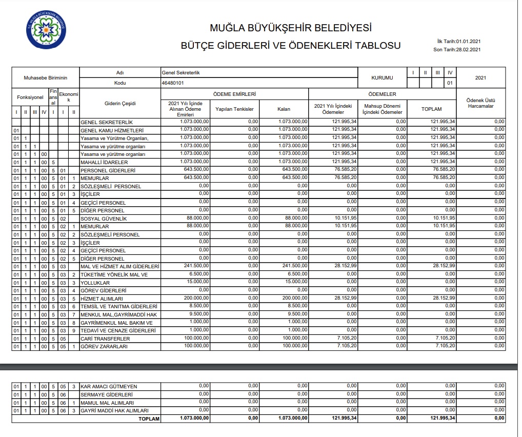 -Bütçe giderlerinin internet sitesi üzerinden ekonomik, finansal ve fonksiyonel sınıflandırmaları yapılarak detaylı tablolar halinde aylık olarak yayınlaması