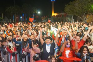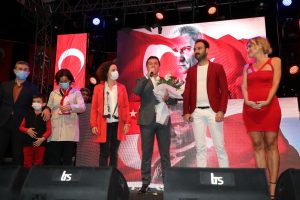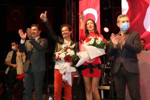 Mandalinci’nin, sanatçılara Başkan Ahmet Aras adına çiçek takdiminin ardından devam eden konserde, vatandaşlar hep bir ağızdan Aykoç’un seslendirdiği marşlara ve şarkılara eşlik ederek Cumhuriyet kutlamalarına devam etti.