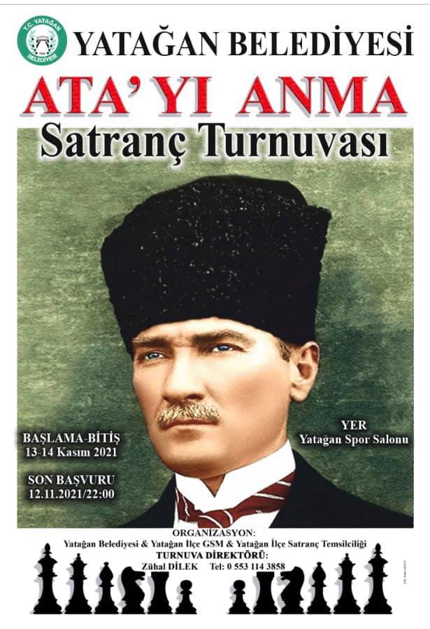 Yatağan Belediyesi, İlçe Gençlik ve Spor Müdürlüğü ile İlçe Satranç Temsilciliği işbirliğiyle, 10 Kasım Atatürk’ü Anma ve Atatürk Haftası etkinlikleri kapsamında, “Ata’yı Anma Satranç Turnuvası” düzenleyecek.