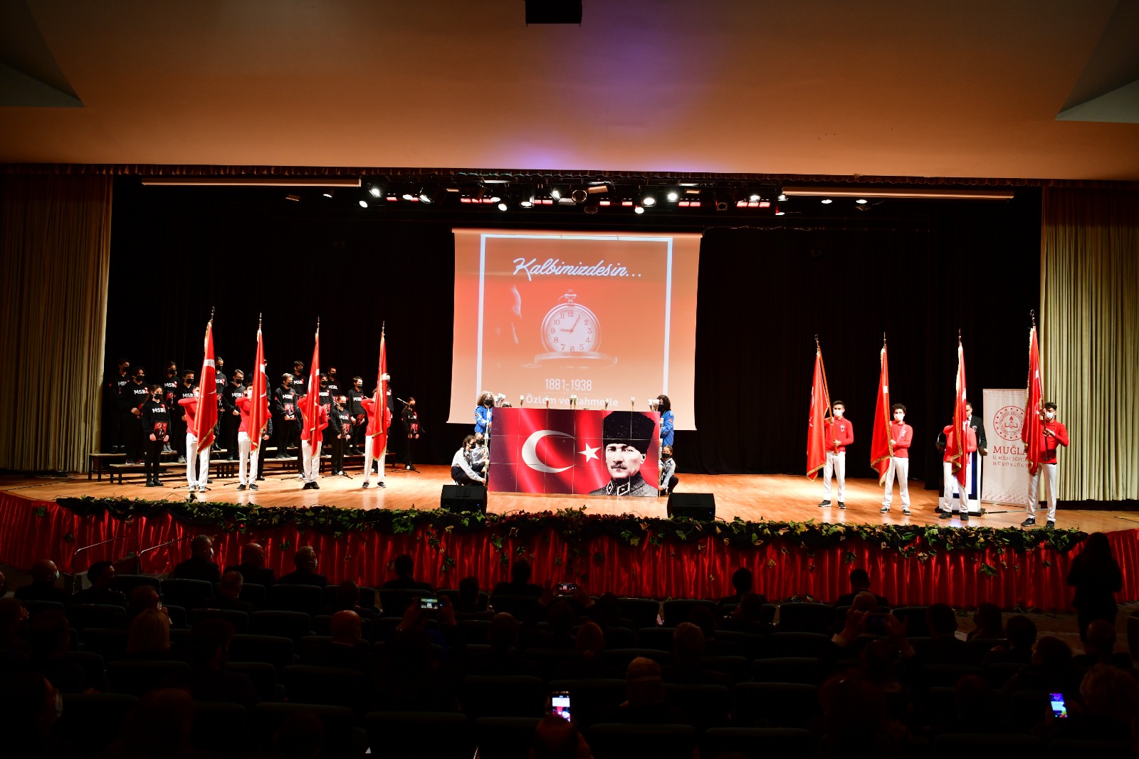 Atatürk Kültür Merkezi’ndeki anma töreninde Bayrak Marşı eşliğinde öğrenciler bayraklarla sahneye çıktı, ardından saygı duruşunda bulunuldu, İstiklal Marşı söylendi. Programın devamında Menteşe Sosyal Bilimler Lisesi Müdürü Mürsel Özata günün anlam ve önemini belirten konuşmayı yaptı.