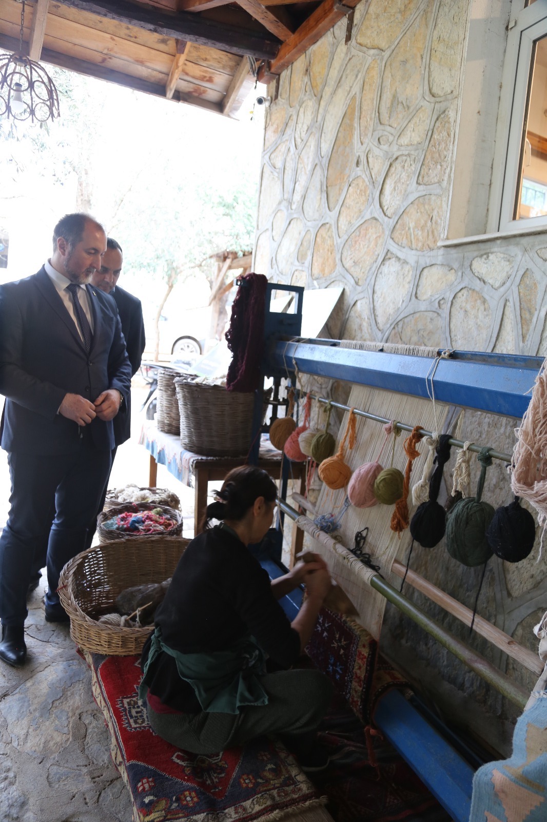 Heyet daha sonra Etrim Halıcılık Köyü’nü ziyaret ederek burada el yapımı, yerel motiflerle dokunmuş halı ve kilimleri inceledi.