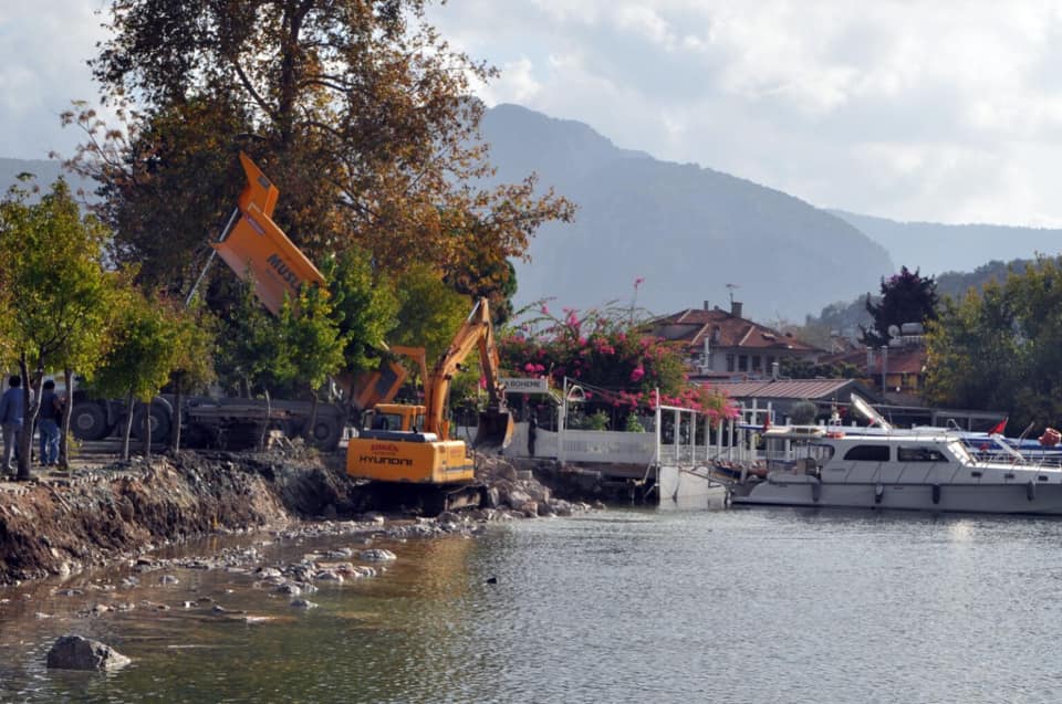 CHP Ortaca İlçe Başkanı Evren Tezcan, Çevre, Şehircilik ve İklim Değişikliği Bakanlığı ve Ortaca Belediyesi işbirliği ile Dalyan sahil bandında yapılan çalışmaların birkaç gün önce başladığını söyledi. Tezcan çalışmalarla ilgili, “Dalyan kanalı kıyısındaki sazlıkların üzeri şu anda kaya dolgu ile kapatılmaktadır. Kıyıdan yaklaşık 3 metre içeriye kayaların doldurulduğunu gözlemledik. Bu yapılan sözde peyzaj çalışması Dalyan kanalında doğa katliamı demektir” ifadelerini kullandı.