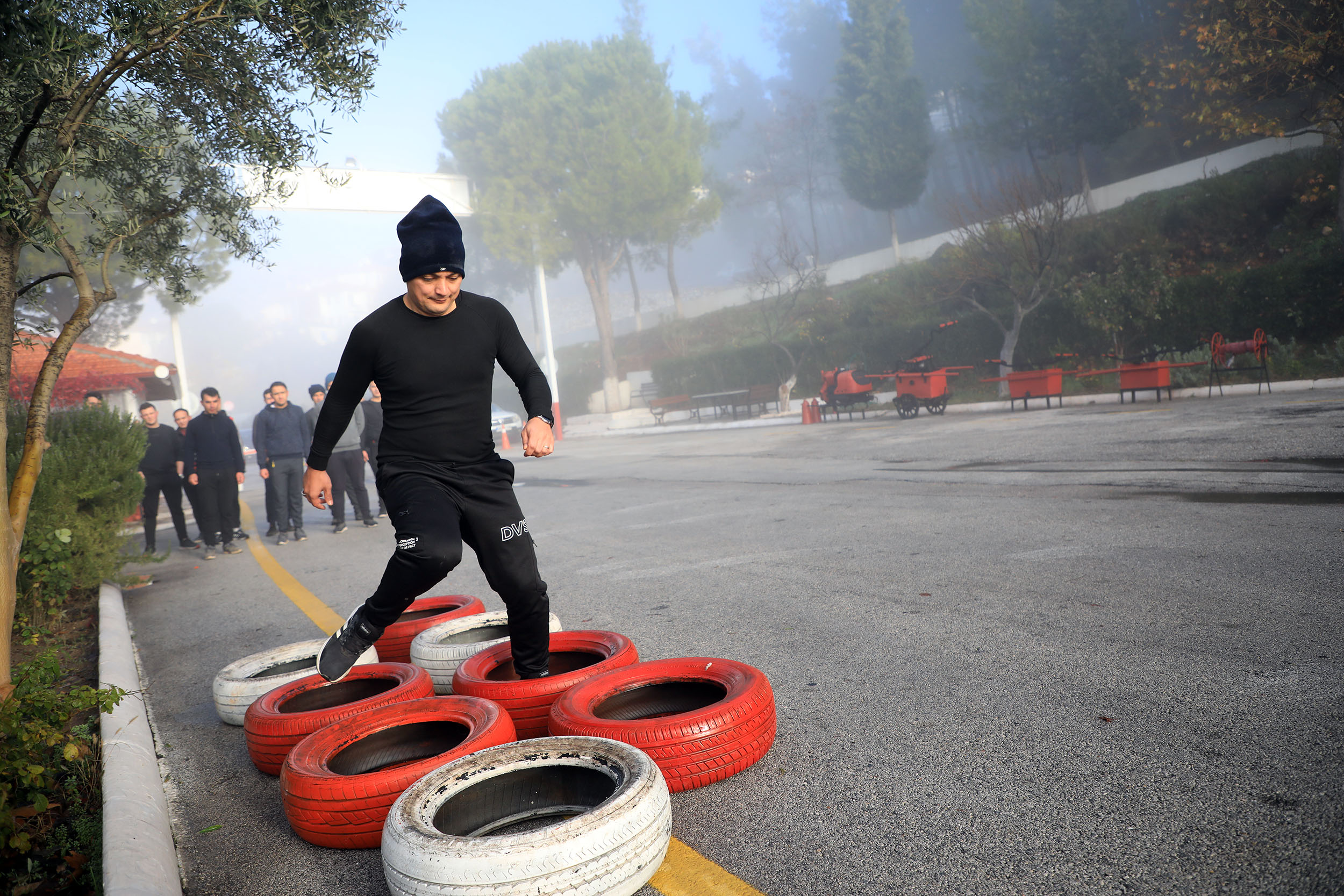 Muğla’daki itfaiye olaylarına kısa sürede müdahale etmeleri ile bilinen Muğla Büyükşehir Belediyesi’nin İtfaiye erleri, yeni memurlarını da bu tempoya hazırlıyor. İlk spor eğitimlerini sisli ve soğuk havada gerçekleştiren yeni itfaiye erleri, güç kondisyon eğitimi, vücut kaslarının güçlendirilmesi, hortum toplama ve açma gibi hareketler yaptılar. Zorlu eğitimden geçen erlerin spor eğitimleri komando eğitimlerini aratmadı.