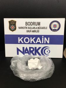 Muğla Narkotik Suçlarla Mücadele Şube Müdürlüğü Bodrum Grup Amirliği ekiplerince yapılan saha çalışmalarında D.Ö isimli şahsın İstanbul ilinden uyuşturucu madde getireceği bilgisi alındı. Cumhuriyet Savcısından alınan arama ve el koyma karına istinaden; Bodrum ilçesi Torba uygulama noktasında durdurulan otobüs içerisinde yakalanan D.Ö isimli şahsın yapılan üst aramasında, net ağırlığı 50 gr. olan kokain maddesi ele geçirildi.