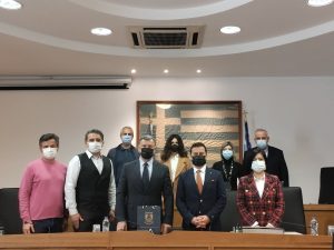 Başkan Nikitaras tarafından sıcak bir şekilde karşılanan Başkan Aras ve beraberindekiler ilk olarak Kos Belediye Meclis Salonu’nda ağırlandı.