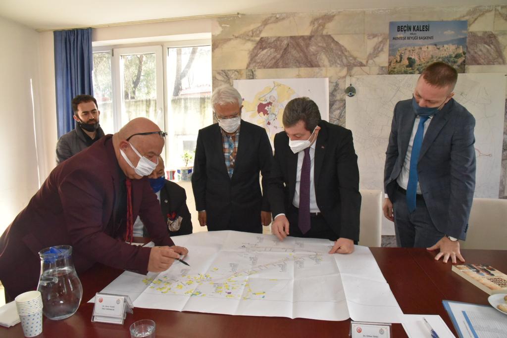 Toplantıda UNESCO Dünya Miras Geçici Listesinde yer alan Menteşeoğulları Beyliği’nin başkenti ve Türk-İslam dönemi yerleşiminde önemli merkezlerden biri olan Beçin Kalesi ve Ören Yeri’nde yapılacak çevre düzenlemesi, aydınlatma, bilgilendirme tabelalarının tamamlanması gibi çalışmaların yapılması konusunda değerlendirmelerde bulunuldu.