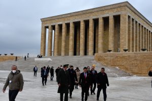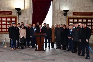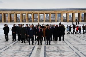 Bodrum Belediye Başkanı Ahmet Aras, CHP Bodrum İlçe Başkanı Halil Karahan, İYİ Parti Bodrum İlçe Başkanı Nevzat Kanber, CHP ve İYİ Parti meclis üyeleri ile Bodrum Belediyesi Özel Kalem Müdürü Serkan Aloğlu’nun yer aldığı heyet, bir dizi ziyaretlerde bulunmak için gittikleri Ankara’da bugün ilk olarak Aslanlı Yol’dan yürüyerek Anıtkabir’de Atatürk’ün mozolesine çelenk bıraktı. Başkan Aras, ziyarette ayrıca Anıtkabir Şeref Defteri’ni imzaladı.