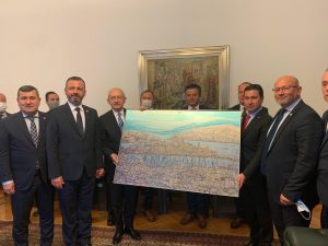 Görüşme sonunda Başkan Aras tarafından Genel Başkan Kılıçdaroğlu’na, Devrim Erbil’in eseri takdim edildi.
