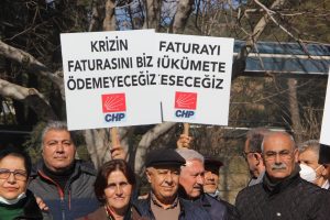 CHP Muğla İl Başkanlığı, Muğla’nın merkez İlçesi Menteşe’de Sınırsızlık Meydanı’nda, “Faturayı hükümete keseceğiz”, “Krizin faturasını biz ödemeyeceğiz” yazılı dövizlerle, basın açıklaması yaptı.