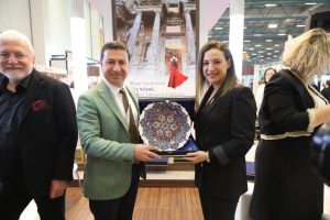 3500 yıllık tarihi, doğası ve samimiyetiyle Ege’nin göz bebeği ve turizm destinasyonlarının önde gelen kenti Bodrum standını ziyaret eden İstanbul Büyükşehir Belediye Başkanı Ekrem İmamoğlu’na Bodrum Mandalina Gazozu ikram edildi. Başkan Aras ile bir süre sohbet eden Başkan İmamoğlu, “Turizm sektöründeki zorlu süreci, ortak akıl ve işbirlikleri ile daha kolay aşabileceğimize inanıyoruz.” dedi.