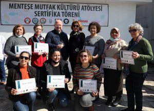 Menteşe Belediyesi Mutfak Kültürü Atölyesi’nde pastacılık kursuna katılan kadın kursiyerlere sertifikaları verildi. Muğla Gastronomi ve Mutfak Sanatları Derneği Başkanı Şef Timur Kocabıçak ve ekibi tarafından ücretsiz olarak verilen pastacılık kursunu tamamlayan 15 kadın kursiyer düzenlenen tören ile belgelerini aldı. Kursu tamamlayarak belge almaya hak kazanan kadınlar, Milli Eğitim Bakanlığı tarafından tanınan sertifikalarıyla turistik işletmelerde ve kuruluşlarda iş bulma imkânına sahip olacak.