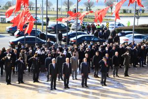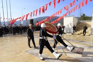 saygı duruşunda bulunuldu. İstiklal Marşı’nın okunmasının ardından şehitler için saygı atışı yapıldı. Günün anlam ve önemine yönelik konuşmaların ardından şehitlikler ziyaret edildi.