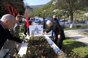 Şehitlikte düzenlenen törende şehitler anıtına çelenk sunumunun ardından,