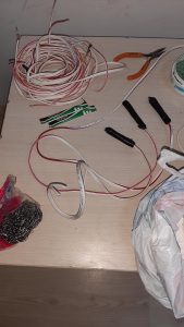 3 adet 1,5 mt. uzunluğunda ucu siyah renkli bant ile bağlanmış elektrik kablosu bulunan düzenek