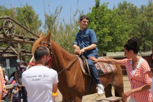 Dans ve müziklerle doğa içinde unutulmayacak anlar yaşayan öğrenciler, çiftlikte bulunan at ve midillilere eğitmen eşliğinde binerek gezdirildi.