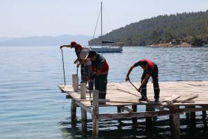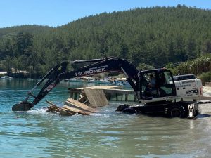 Muğla’nın Menteşe İlçesi Akbük Sahili, Kıran, Sarnıç, Kuyucak Mahallelerinde idari ve yargı süreci tamamlanan, yapı kayıt belgeleri iptal edilen yapıların yıkımına devam ediliyor. 6’ncı etap yıkım çalışmaları kapsamında yürütmeyi durdurma kararı alan inşaatlardan kararı kaldırılan 15 adet yapının yıkımı gerçekleştirildi. Kaçak yapıyla mücadele kapsamında yıkım kararı alınmış olan Akbük’teki 5 büyük iskele belediye ekiplerince yıkıldı.