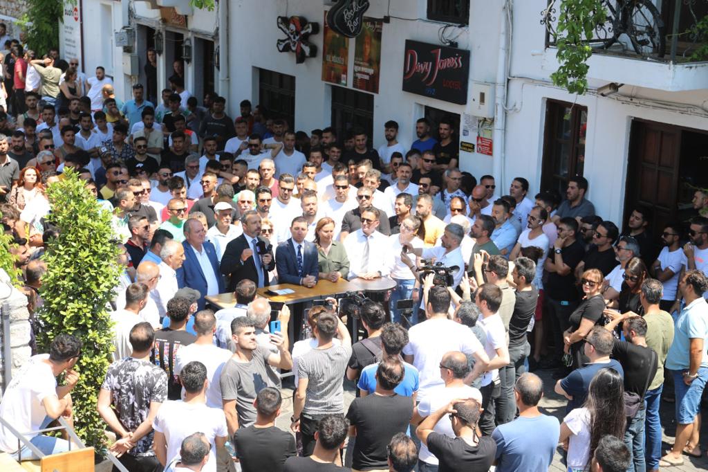 Marmaris’te turizm ve eğlence sektörünün sorunlarını dinleyen CHP Muğla Milletvekili Av. Burak Erbay CHP Marmaris, Fethiye, Bodrum İlçe Başkanları, Marmaris Belediyesi Başkan Yardımcısı, Meclis üyeleri, gençlik kolları, kadın kolları üyeleri ile turizm ve eğlence sektöründen esnaflarla birlikte basın açıklaması düzenledi.