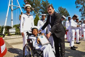 Saygı duruşu ve İstiklal Marşının okunmasıyla başlayan törende yaptığı konuşmada Anayasamızda vatan hizmetinin her Türk’ün hakkı ve ödevi olarak yer aldığını belirten Aksaz Deniz Üs Komutanı Tuğamiral İbrahim Kurtuluş Sevinç engel tanımayan bireylere seslenerek sizlerin sevginizde, düşüncenizde ve başarınızda engel yoktur. Biz bugün bunları gördük, yaşadık. Sizlerle gurur duyduk. Bundan sonra da gönlümüzün ve komutanlığımızın kapıları sizler için sonuna kadar açıktır” ifadelerini kullandı.