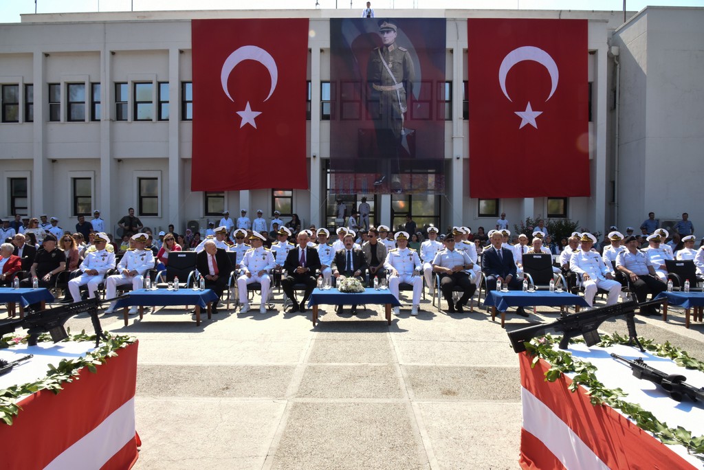 Marmaris Aksaz Deniz Üs Komutanlığındaki törene Muğla Valisi Orhan Tavlı’nın yanı sıra Aksaz Deniz Üs Komutanı Tuğamiral İbrahim Kurtuluş Sevinç, Güney Görev Grup Komutanı Tuğamiral Mehmet Emre Sezenler, Marmaris Kaymakamı Ertuğ Şevket Aksoy,