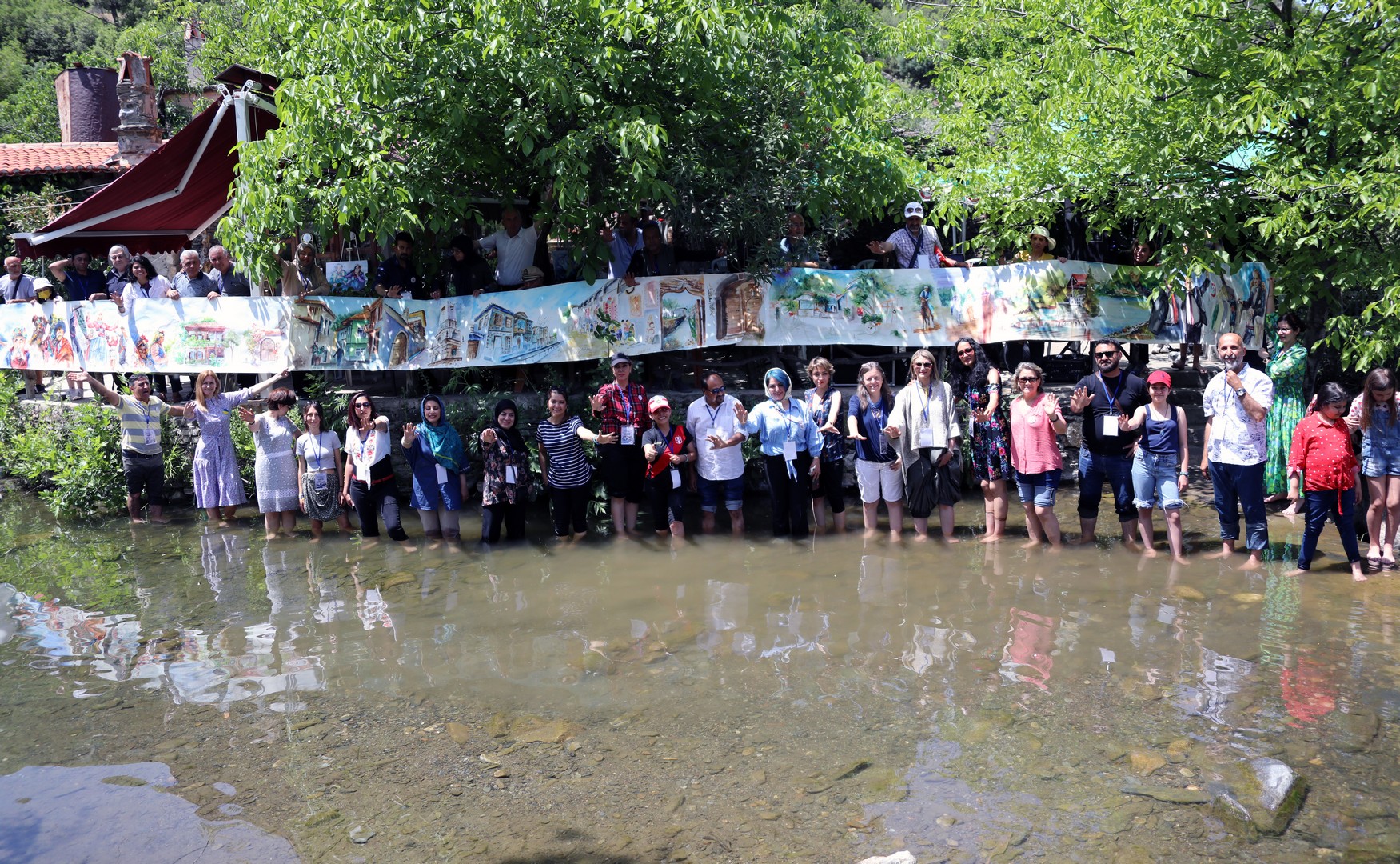 “Sanat Yoluyla Barış Uluslararası Suluboya Şenliği” kapsamında açılışı yapılan Sanat Kafede 47 farklı sanatçı kendileri için hazırlanan 20 metre uzunluğundaki Menteşe panoramalı çalışmada suluboya yaptılar.