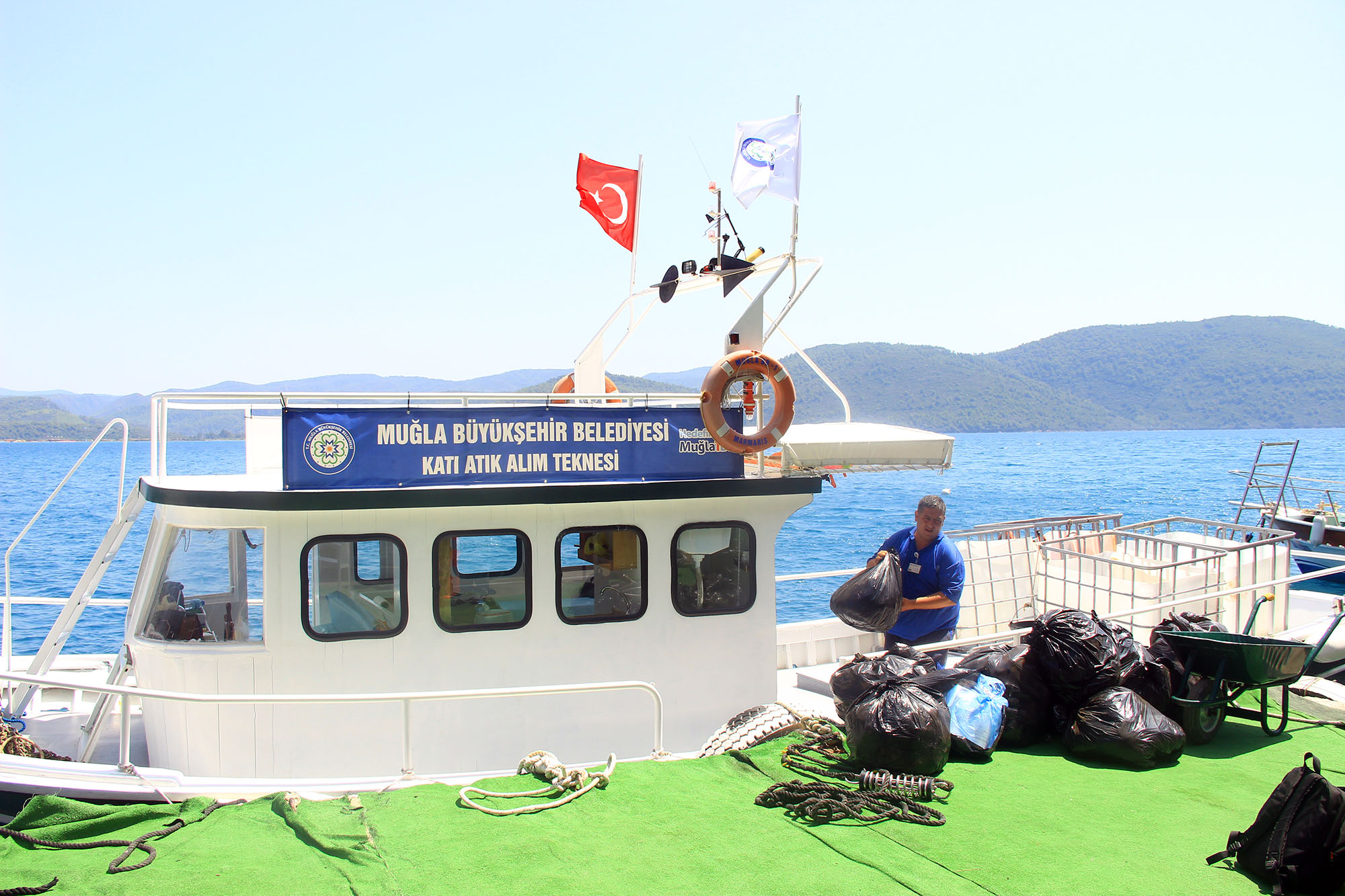 Muğla Büyükşehir Belediyesi denizlerin daha temiz kalması ve mavinin korunması için haftanın 7 günü 7 atık alım teknesiyle denizlerde hizmet veriyor.