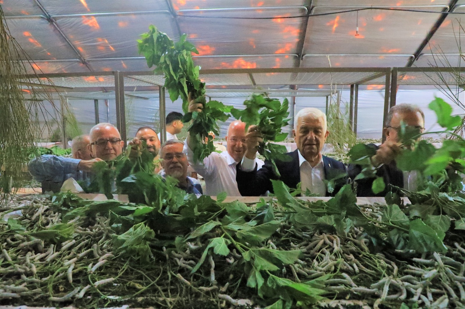Konuşmaların ardından Başkan Gürün ve beraberindeki ekip Bayır Mahallesi’nde ipekböceği üreticileri için Muğla Büyükşehir Belediyesi tarafından temin edilen ipekböceği besleme çadırında incelemelerde bulundu.