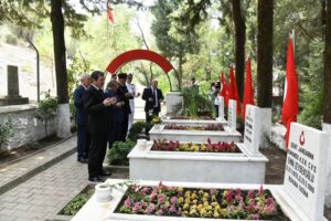 Vali Orhan Tavlı, Şehir Eski Mezarlığı Şehitliği ve Şehir Yeni Mezarlığı Şehitliğini ziyaret ederek, aziz vatanımızın birlik ve beraberliği, kutsal vatan topraklarının bölünmez bütünlüğü uğruna şehadet mertebesine ulaşan şehitlerimizin kabri başında dua etti.