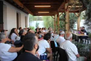 Türkbükü Kafe’de yoğun bir katılım ile gerçekleşen söyleşide, Türkiye gündeminde yer alan önemli konular konuşuldu. Sohbet havasında geçen söyleşi, vatandaşlar tarafından ilgi ile dinlendi. Deniz Zeyrek ve Akif Beki’nin yazdığı kitaplar okurlar tarafından büyük ilgi gördü. Söyleşi sonunda Zeyrek ve Beki kitaplarını okurları için imzaladı.