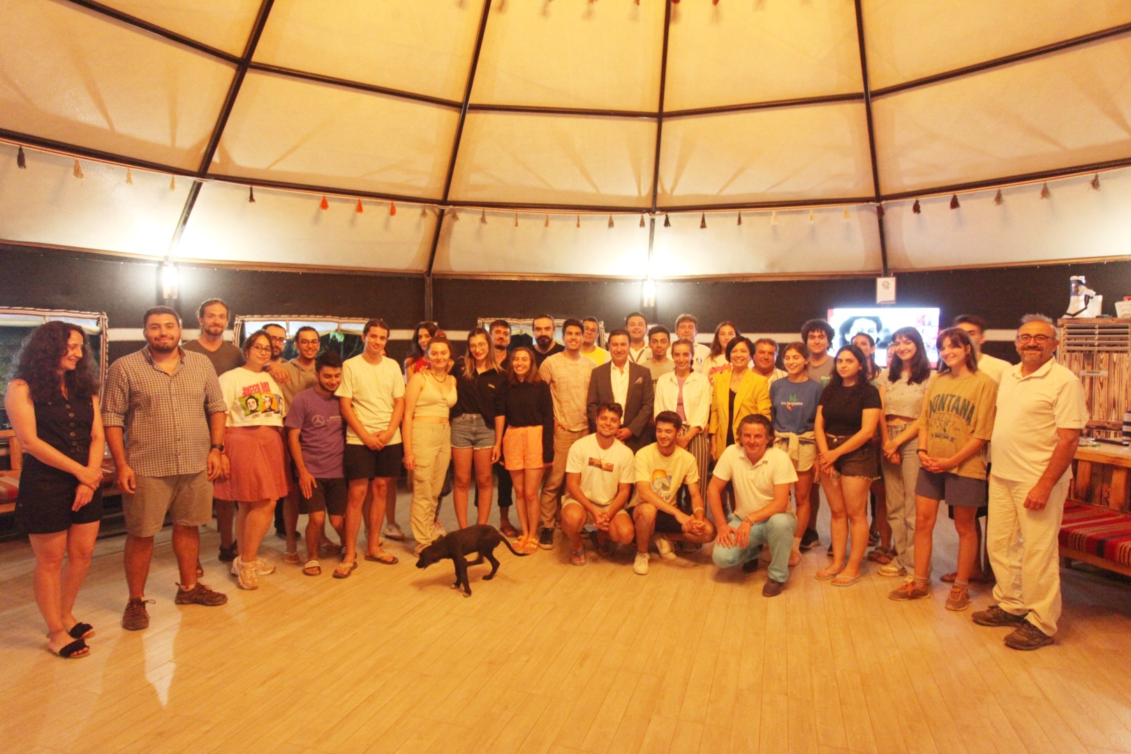 Bodrum Belediyesi ve Bodrum Institute iş birliğinde organize edilen Çevre ve Sürdürülebilirlik Yaz Okulu kapsamında TOBB, ETÜ VE TED üniversitelerinde siyaset bilimi, endüstriyel tasarım, mühendislik, hukuk ve mimarlık bölümlerinde öğrenim gören 36 öğrenci ile Başkan Ahmet Aras, Karaova Gençlik ve Tarım Parkı’nda buluştu.