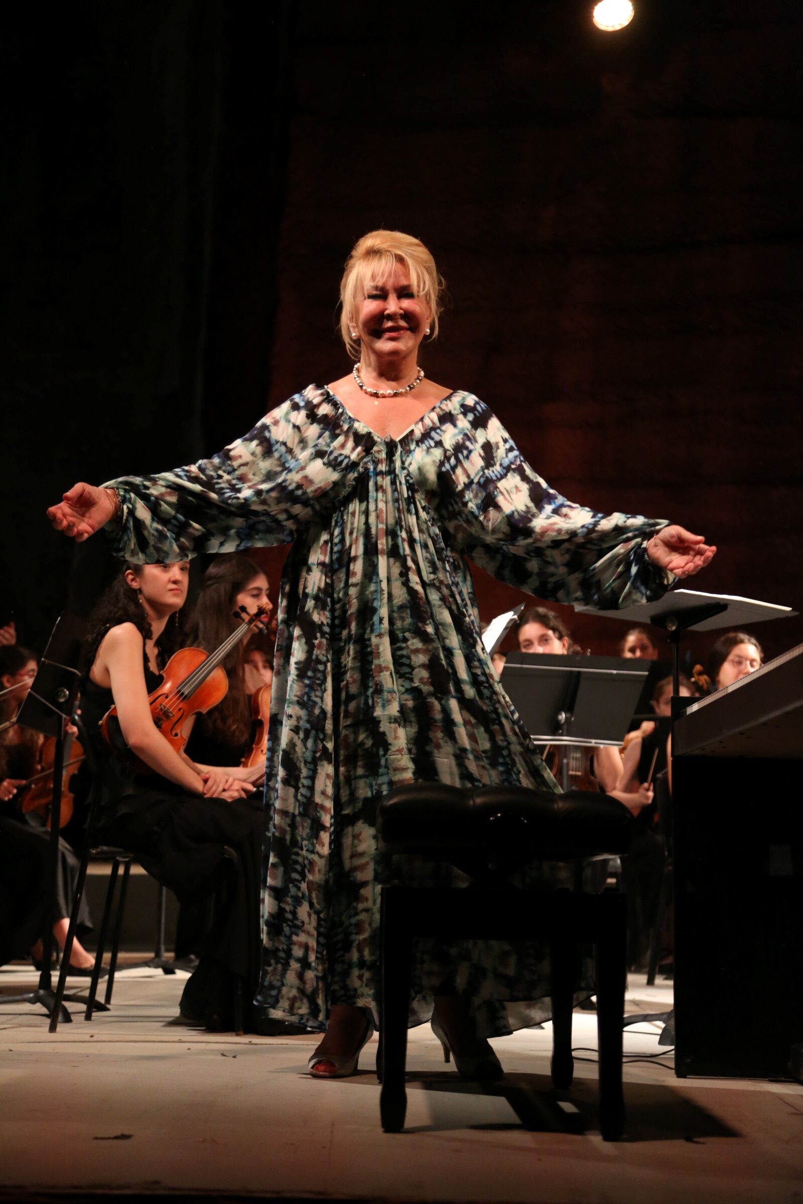 Solistler Gülsin Onay, Alara Acar ve Işın Metin yönetimindeki BGSO, Gümüşlük’ün 2 bin 500 yıllık tarihi mekânın sahnesinde klasik müzikseverlerce ayakta alkışlandı. Yoğun ilginin olduğu konser, Bodrum’un sanat çevrelerini de biraraya getirdi. Program, Murat Artu’nun bir videosunun projektör aracılığıyla izleyiciye sunulmasıyla başladı. Ardından, 1994’te kurulan, yurtiçi ve dışında birçok önemli konserler vererek ülkemizi temsil eden Şef Işın Metin yönetimindeki Bilkent Gençlik Senfoni Orkestrası (BGSO), Gümüşlük’teki tarihi mekânın sahnesine, W.A. Mozart’ın sevilen bir serenatı ile çıktı. Bestecinin “Serenade No.13 in G Major, K. 525 – “Eine Kleine Nachtmusik” başlıklı bu eserinin ardından Arpist Alara Acar, sahnede yerlerini alarak Claude Debussy’nin, “Danse sacrée et danse profane” for Harp and String Orchestra’ adlı eserini Işın Metin yönetimindeki BGSO eşliğinde seslendirdi. Genç Arpist Alara Acar’ın, sergilediği performans görülmeye değerdi. Gecenin ilk yarısında seslendirilen bu iki eserin ardından programa ara verildi.
