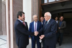 Vali Orhan Tavlı ve muhtarlar Ankara’da Saygıdeğer Cumhurbaşkanımız Recep Tayyip Erdoğan ve İçişleri Bakanımız Sayın Süleyman Soylu ile birlikte 19 Ekim Muhtarlar günü nedeniyle Ankara’da bulunan muhtarların katılımıyla yapılan Muhtarlar Evi açılışı ile 100 Muhtarlık Hizmet Binası temel atma törenini Canlı bağlantı ile takip etti.