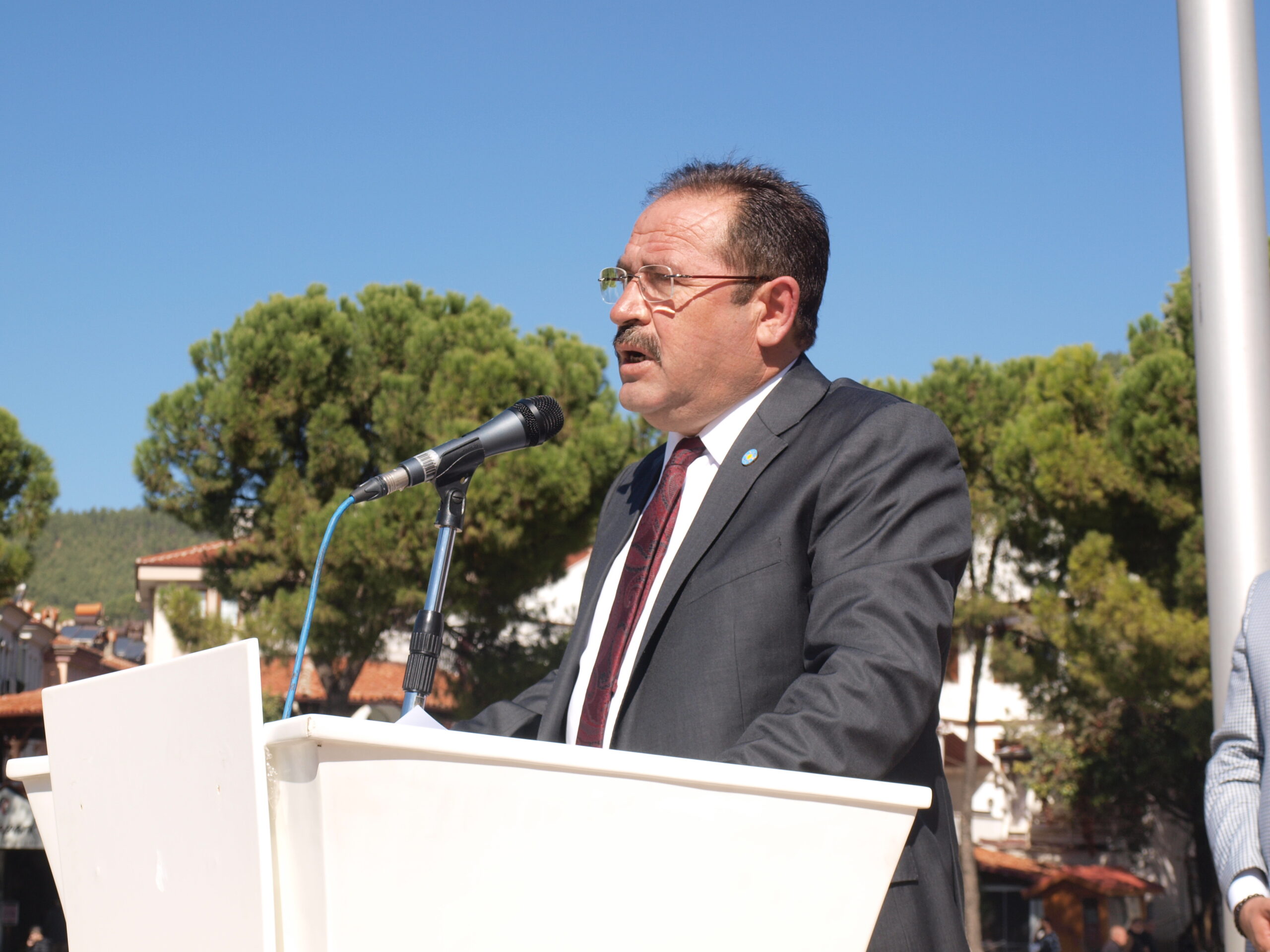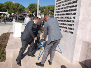 Muğla İl başkanlığı da Cumhuriyet Meydanı’nda bulunan Atatürk anıtına çelenk koyarken , saygı duruşu ve İstiklal Marşı’nın ardından il başkanı Davut Cumhur Akmeşe, bir konuşma yaptı .