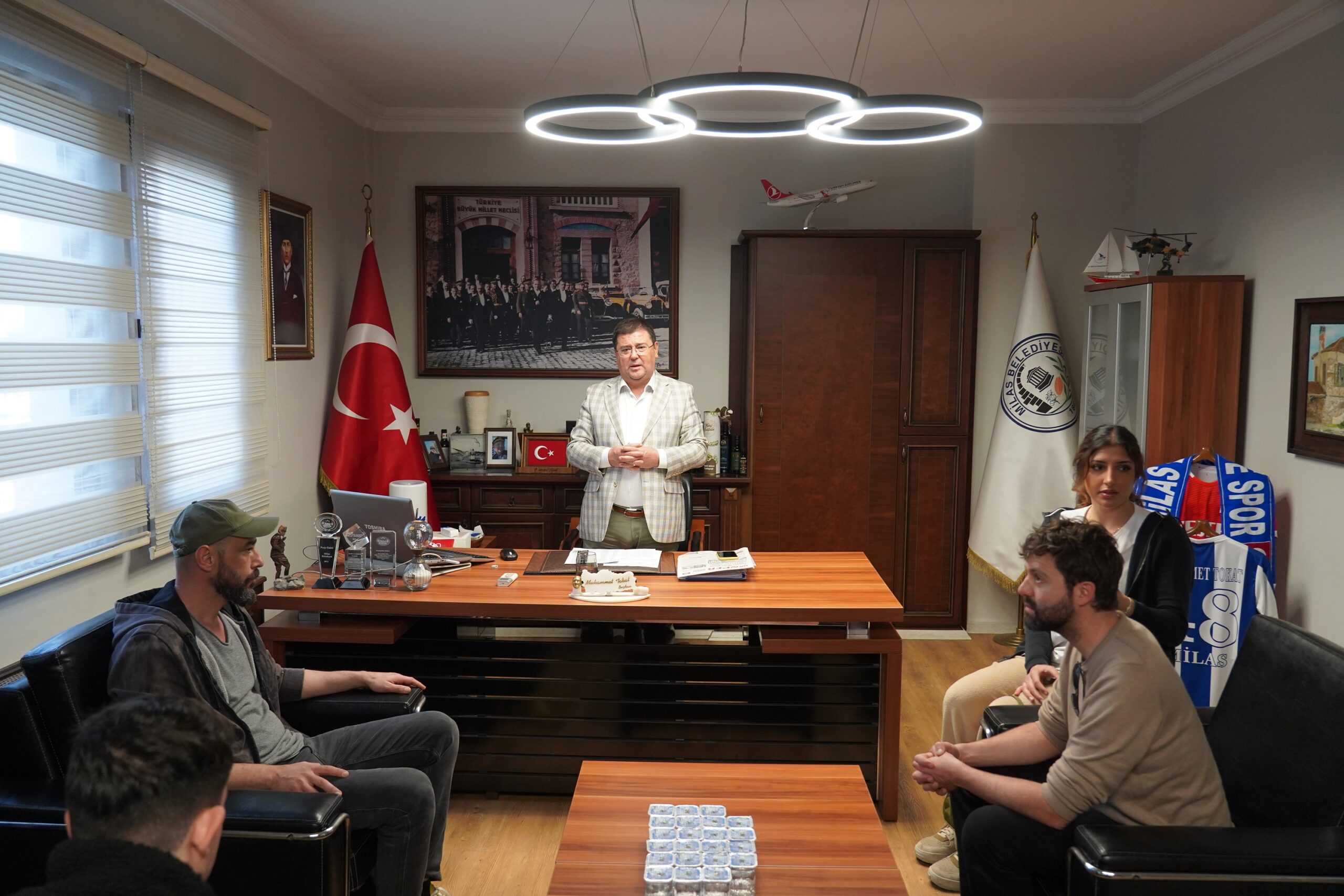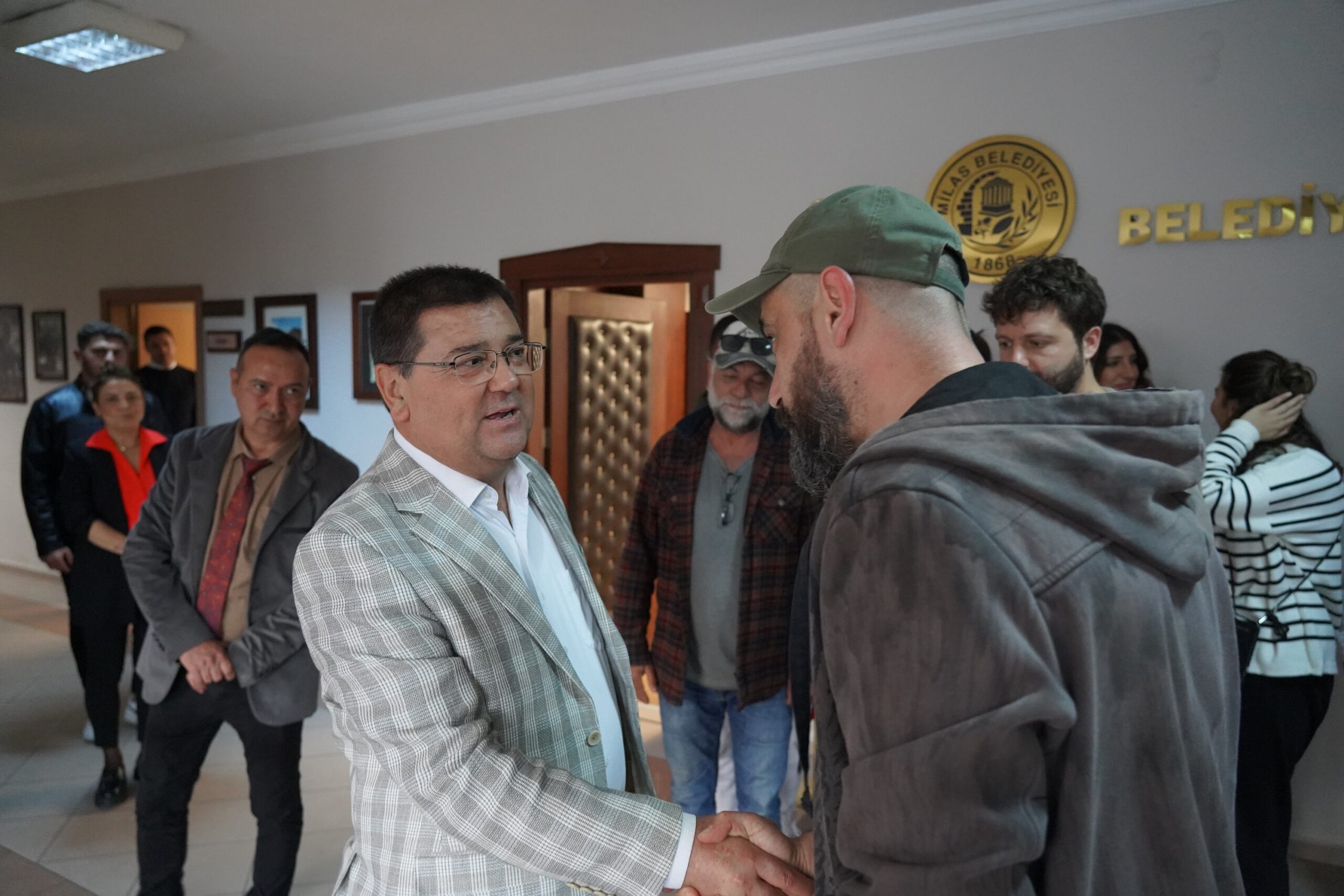 Yaklaşık 20 öğrenci ve gözlemci, ilçe genelinde bir dizi incelemede bulunduktan sonra Milas Belediye Başkanı Muhammet Tokat’ı ziyaret etti.