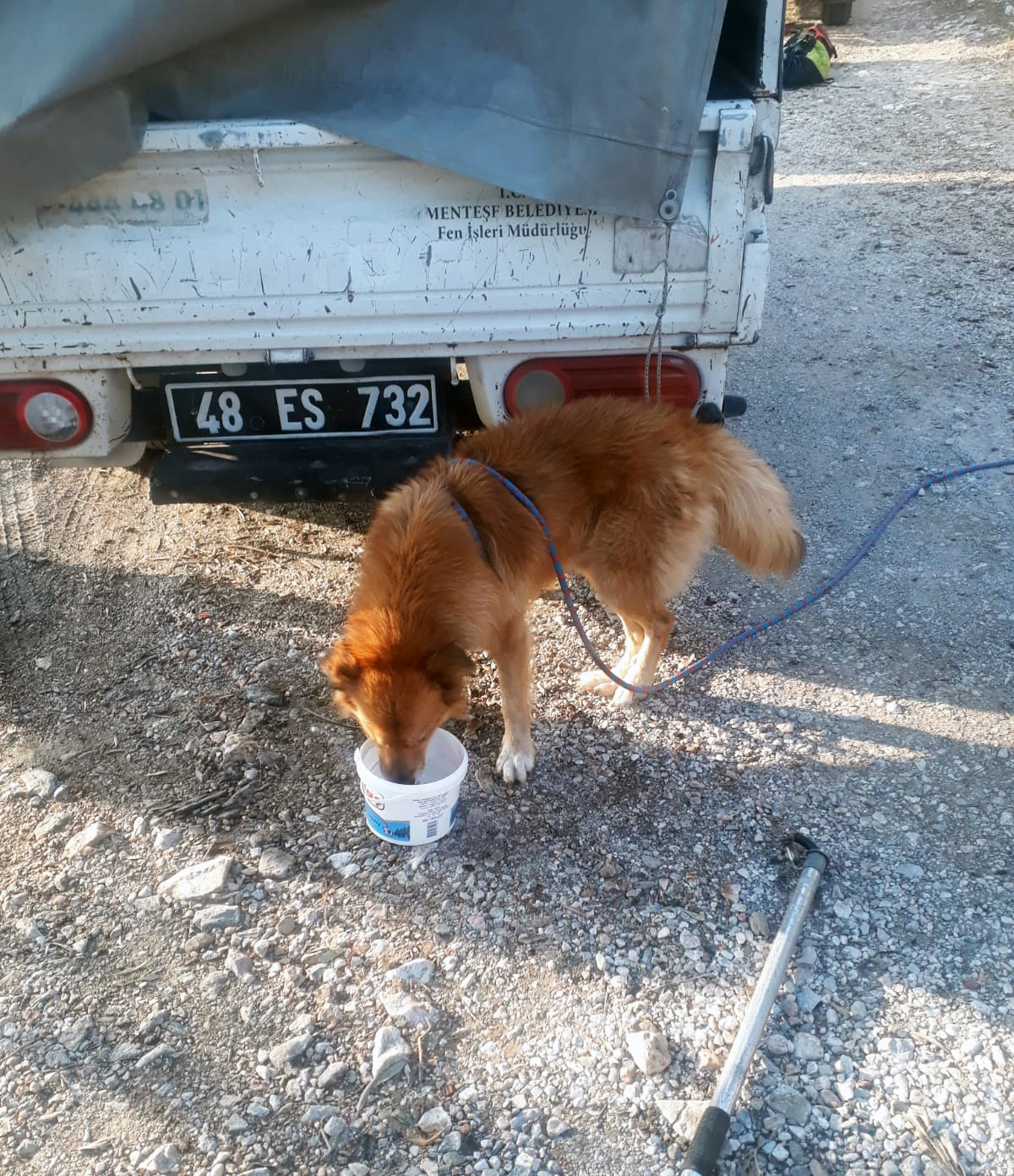 Menteşe Belediyesi ekipleri gelen ihbar üzerine Kıran Mahallesi Taşgöçüğü mevkiinde kayalıkların arasında mahsur kalan köpeği kurtardılar.