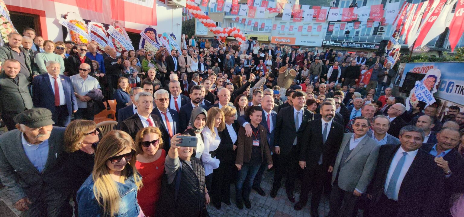 CHP Muğla Milletvekili Burak Erbay da şöyle konuştu:”Mevcut iktidarın ülkeye verdiği zararı hepiniz biliyorsunuz. Turizmci biliyor, ziraatla uğraşan tarımcılar biliyor, emeklimiz biliyor, gençlerimiz biliyor. Bunu damarımıza kadar hissediyoruz. Geçinmekte zorlanıyoruz. Temel ihtiyaçlarımızı karşılamakta zorlanıyoruz. Faturalarımızı, kiramızı, Bağ-Kur’umuzu, sigortamızı ödeyemiyoruz. Tarım yapacağız; ilaç, gübre alamıyoruz. Turizmciler büyük sıkıntı içerisinde. İşte bu sıkıntının tek sebebi var o da mevcut saray düzeni, AKP iktidarı ve maalesef peşine takılan Milliyetçi Hareket Partisi.Bu ülke güzellikleri hak ediyor. Bu ülke bu günlere kolay gelmedi. Mustafa Kemal Atatürk ve silah arkadaşları büyük bir savaş verdiler. Büyük bedeller ödendi. Çok değerli başkanım, beraber mesai yaptık. Uzun zamandır Fethiye’de bizim bayrağımızı ayakta tutmak için mücadele etti. Engelleri aşarak bugünlere kadar geldi ve bir yola çıkıyor. CHP, yüz yıllık bir parti örneği yok. Bu partide çay ikram etmekten tutun her görev kutsaldır. Milletvekili olmak da en kutsal görevdir. Başkanımızda böyle kutsal bir yola çıkıyor. Bu yolda başarılar diliyorum.”