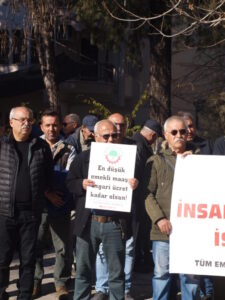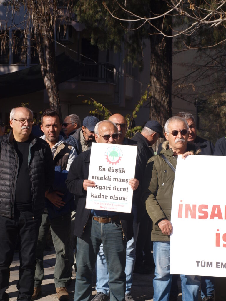 Tüm Emekliler Sendikası üyeleri Muğla Menteşe İlçesi Sınırsızlık Meydanı’nda bir araya gelerek kitlesel basın açıklamasına katılırken ; “Yine bir maaş belirleme dönemindeyiz. Ve yine maaşlarımız belirlenirken milyonlarca emekli ve emekçi tek kişinin ağzına bakacak. Asgari ücret belirlenirken masada sendika yoktu. Asgari Ücret Tespit Komisyonu yoktu. Bakan yoktu. Bir akşam saray şu olacak dedi ve büyük müjdelerle asgari ücrete yüzde 54 zamda anlaştıklarını açıkladı. Ama kiminle anlaştıklarını söylemedi. Çünkü orada kendilerinden başka kimse yoktu. Büyük müjdelerle ve yüksek yüzdelerle belirlenen asgari ücretin alım gücü altı ay öncesi kadar bile değildi oysa. Pahalılık karşısında hiç bu kadar erimeyen asgari ücret, sahici bir açlık ve yoksulluk sınırı belirlenerek, insanca yaşanacak bir düzeye getirilmelidir.