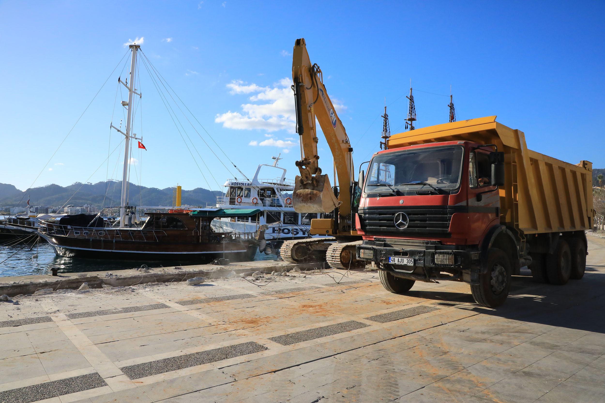 Marmaris Yat Limanı Yenileme projesi kapsamında altyapı çalışmalarının tamamlanmasıyla birlikte çalışmalarında 12 bin m2 zemin kaplaması yapılacak.