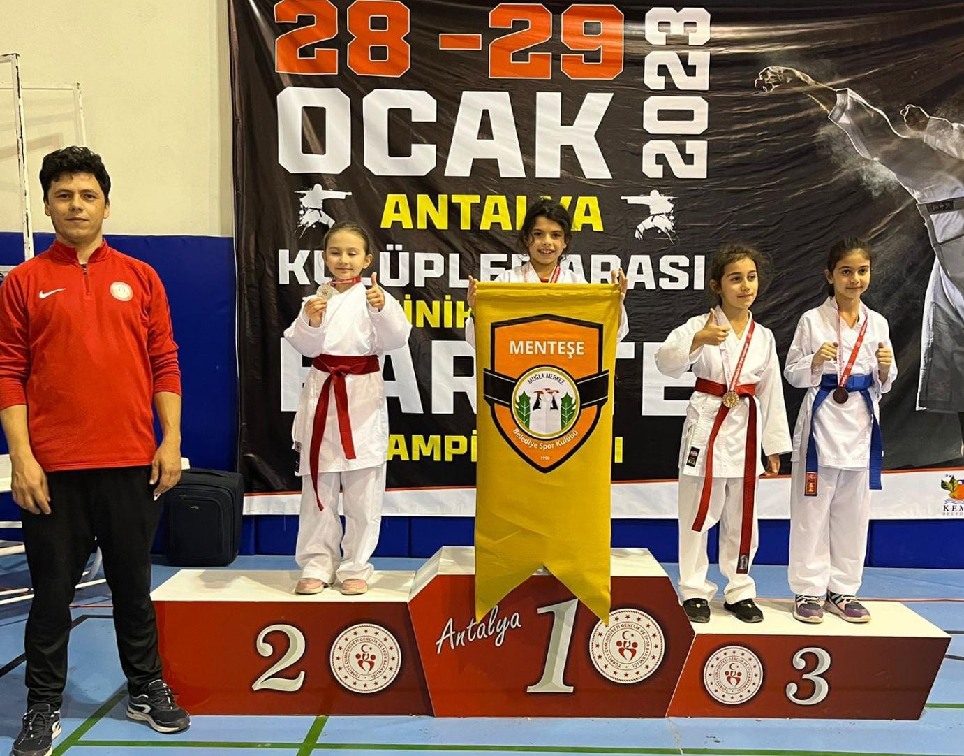 Menteşe Belediye Spor Kulübü Karate Takımı, 28 – 29 Ocak 2023 tarihlerinde Antalya’da düzenlenen iller arası Karate Şampiyonasında 3 Altın, 5 Gümüş, 2 Bronz madalya kazandı. Antalya’da düzenlenen; 7 ilden 22 Kulüp ve 420 sporcunun katıldığı iller arası Karate Şampiyonasında toplam 10 adet madalya kazanan Menteşeli karateciler, aileleri ve hocaları ile birlikte Menteşe Belediye Başkanı Bahattin Gümüş’ü makamında ziyaret ettiler. Şampiyonaya katılan sporcuları ve hocalarını tebrik eden Başkan Gümüş, “Karate Takımımız Antalya’daki turnuvada 10 adet madalya kazanarak yine göğsümüzü kabarttı. Çocuklarımızın genç yaşta doğru yönlendirme ve disiplinli bir şekilde çalışmayla ne kadar başarılı olduklarını görmek bizleri mutlu ediyor. Sporcularımızı emekleri ve azimleri için kutluyorum.” diye konuştu.