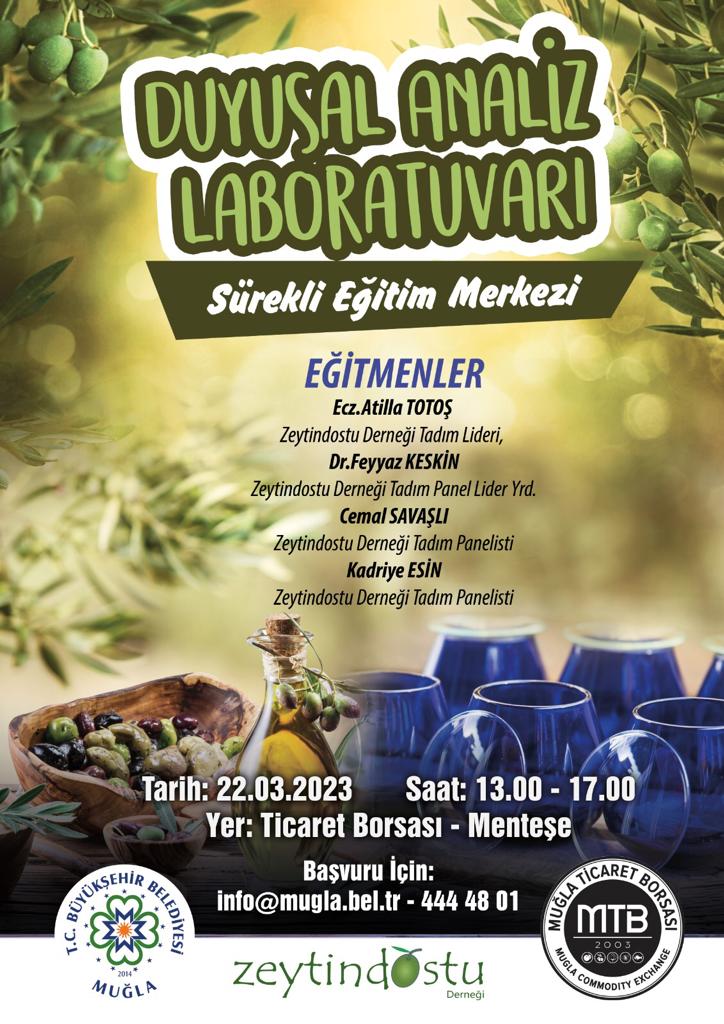 Muğla Büyükşehir Belediyesi’nin Zeytindostu Derneği ve Muğla Ticaret Borsası’nın ortak girişimleri ile Muğla Ticaret Borsası yeni hizmet binasında 2017 yılında açılışı yapılan Duyusal Analiz Laboratuvarı’nda, zeytinyağı tadım eğitimlerinde bu güne kadar 420 kişi eğitim aldı. 24 panelistin aynı anda tadım yapabileceği, 2 ayrı panel odası bulunan laboratuvarda yapılacak çalışmalar ile kaliteli zeytinyağı üretimine, değer artışı sağlanmasına, ihracata yönelik ürün elde etme ve bilinçli tüketici kavramlarına da katkı sağlanması hedefleniyor.