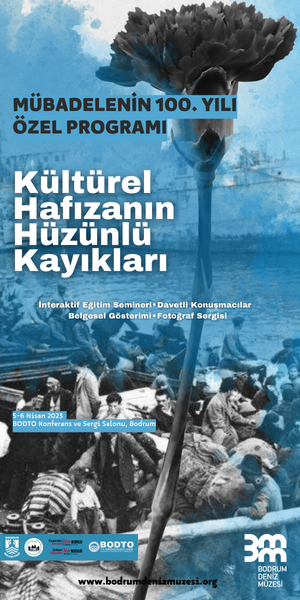 1923 yılında Türkiye ve Yunanistan arasında gerçekleşen nüfus mübadelesiyle Rumlar ve Müslümanlar karşılıklı zorunlu göçe tabi tutulmuşlardır. Mübadelenin Bodrum’daki izleri bağlamında düzenlenen Mübadelenin 100. Yılı Özel Programında “kültürel hafıza” olgusuna giriş yapılacak seminer programıyla birlikte mübadele öncesi ve sonrası bu değişimin parçaları olan, aynı zamanda Bodrum Deniz Müzesi yazarları olan Bodrumlu kişilerle konuşma ve imza etkinlikleri, konuyla ilgili denizcilik odağında bir araştırma sunumu, belgesel gösterimi ve fotoğraf sergisi gerçekleşecektir.