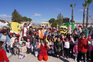 Şişme oyun alanları, tiyatro gösterileri, sinema gösterimi, palyaço, çizgi film figüranları, yüz boyama gibi etkinliklerle çocukların gününe renk katan şenlikte çocuklara pamuk şeker, patlamış mısır ve yiyecek ikramında bulunuldu, boyama kitabı ve oyuncaklar hediye edildi.